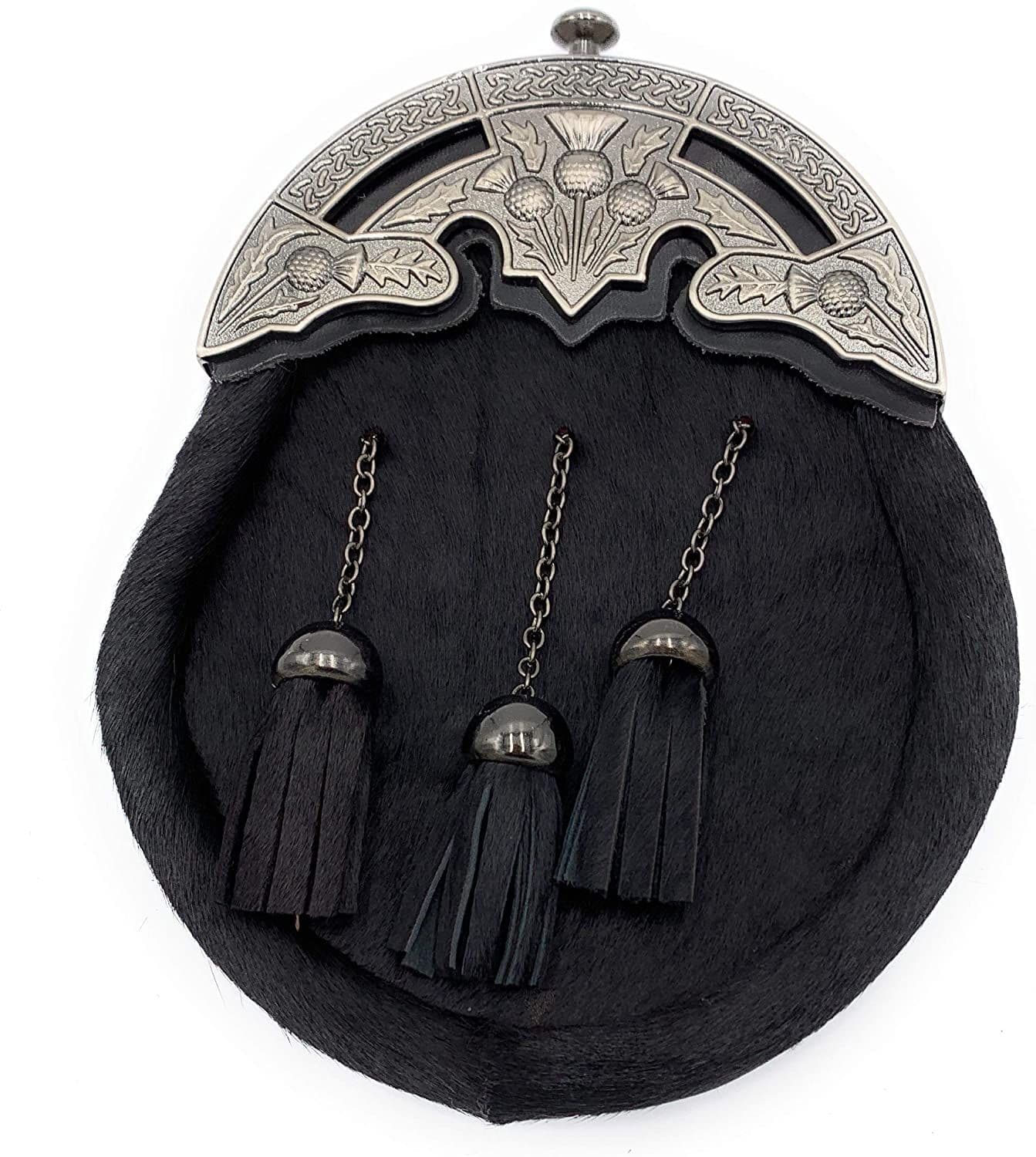 Men's Full Dress Black Antique Thistle Mantle Kilt Sporran & Chain Belt