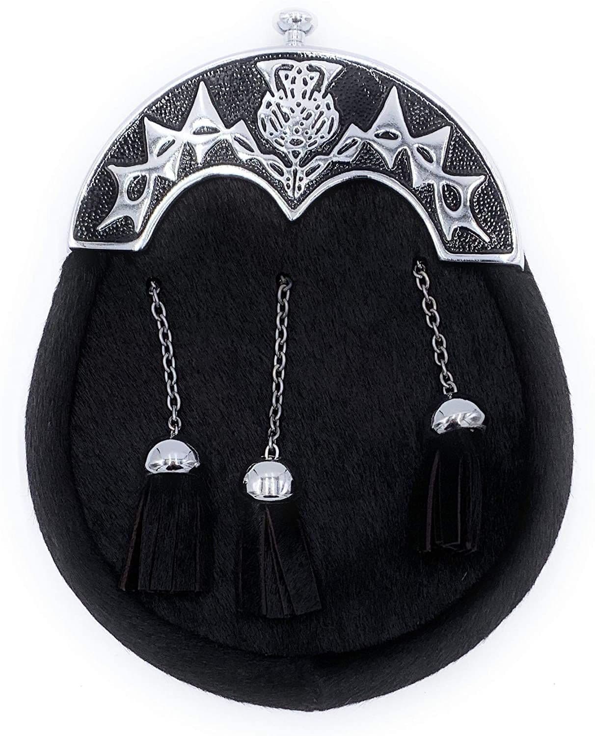 Men's Full Dress Black Thistle Design Kilt Sporran & Chain Belt