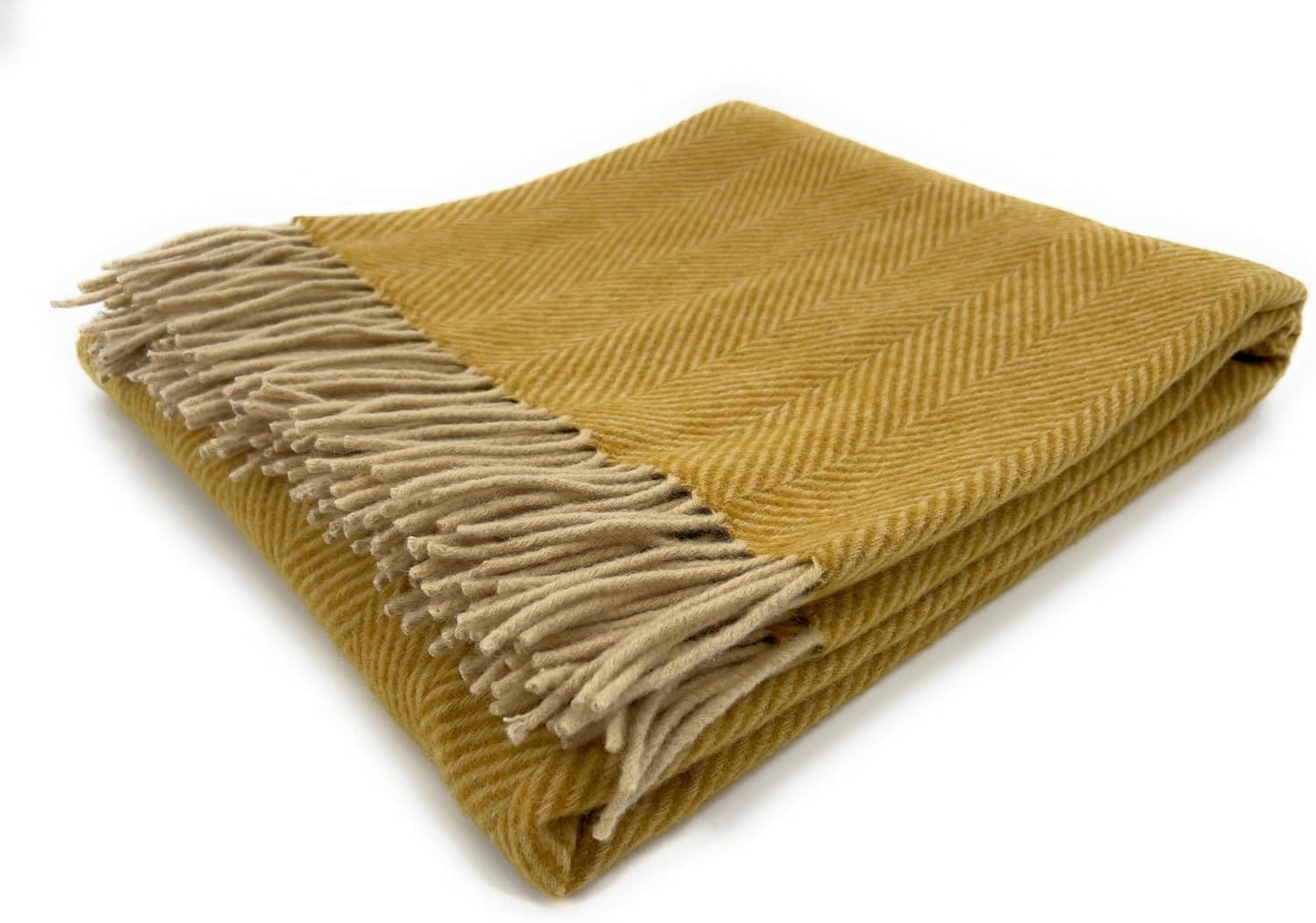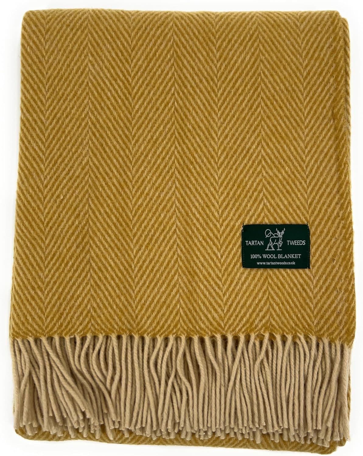 Mustard Herringbone 100% Wool Large Blanket Throw