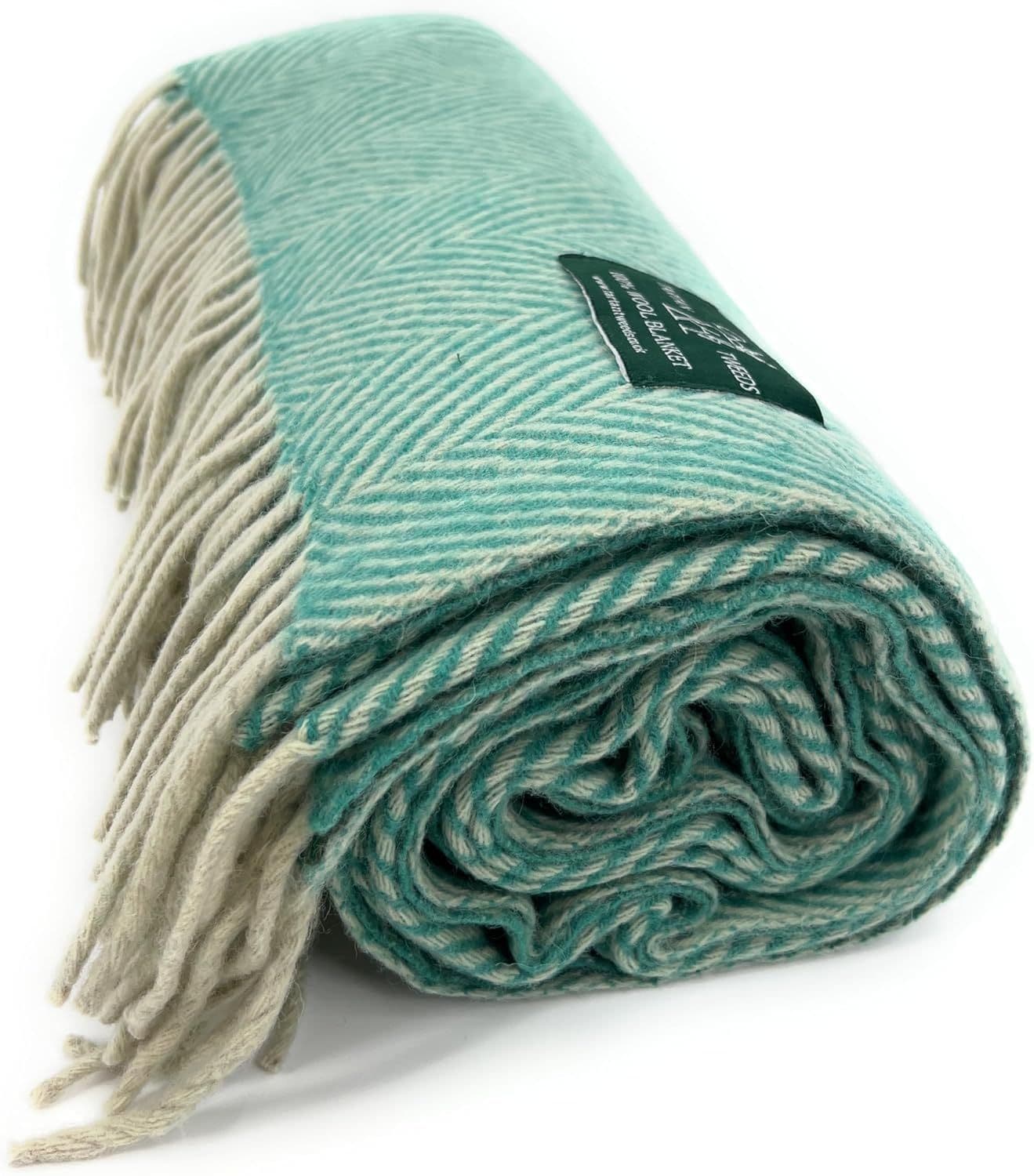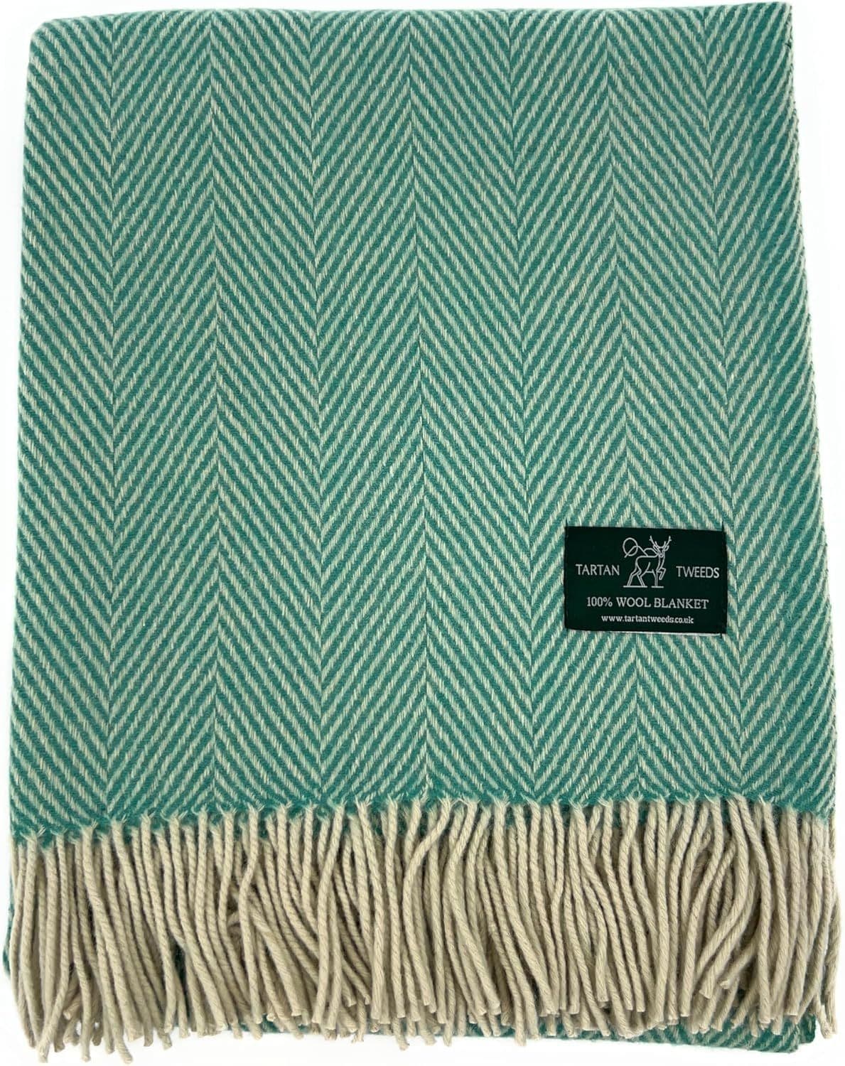 Sea Green Herringbone 100% Wool Large Blanket Throw